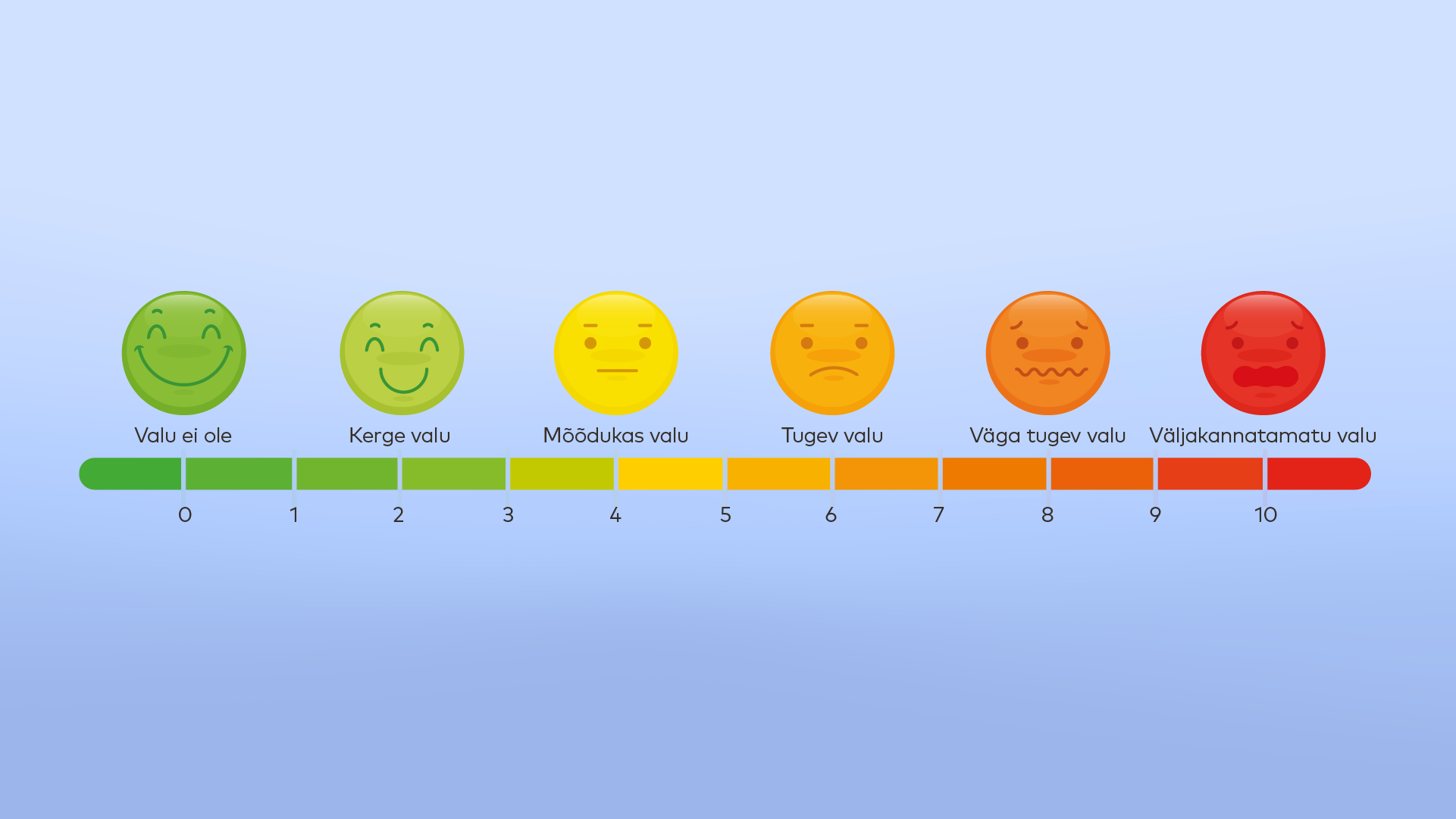 Valuskaala kasutamine on vajalik valu intensiivsuse hindamiseks ja ravi efektiivsuse jälgimiseks. Patsientidel palutakse hinnata oma valu skaalal 0-10, kus 0 tähendab valu puudumist ja 10 väljakannatamatu valu. See metoodika aitab arstil mõista, kuidas valu mõjutab patsiendi elukvaliteeti ja võimaldab edasiste ravimeetmete adekvaatset planeerimist.